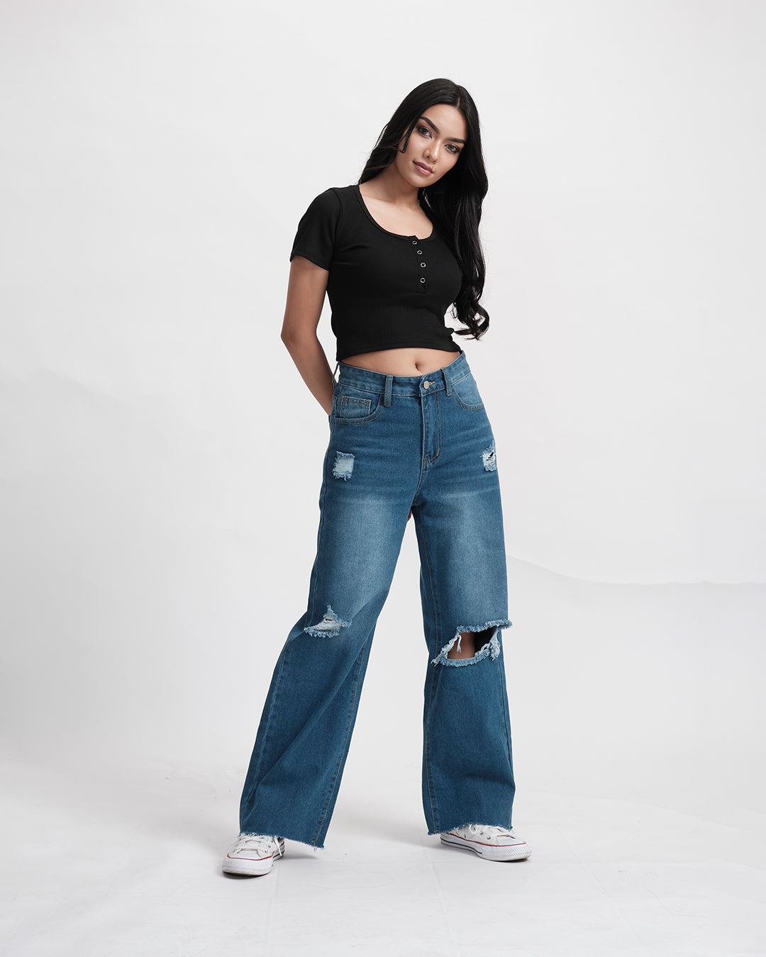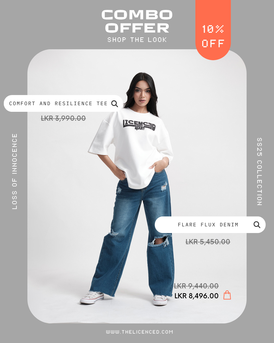 Slide into comfort and cool with the Easy Flare Combo — featuring the oversized Comfort & Resilience Tee and the statement-making Flare Flux Denim. This look blends laid-back energy with confident movement.