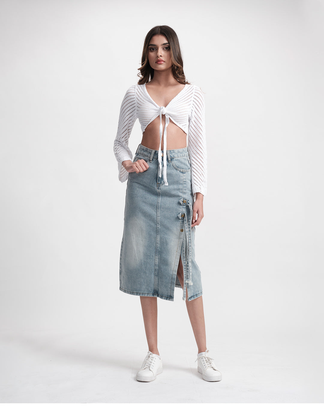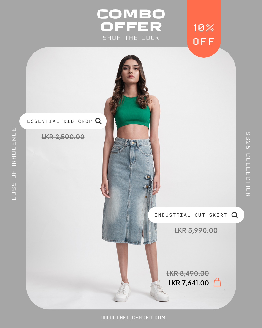 Sleek, bold, and made to move — this combo pairs the vibrant Essential Rib Crop in green with the daring Industrial Cut Skirt. Designed with utilitarian accents and streetwear edge, this look is where structure meets flair.