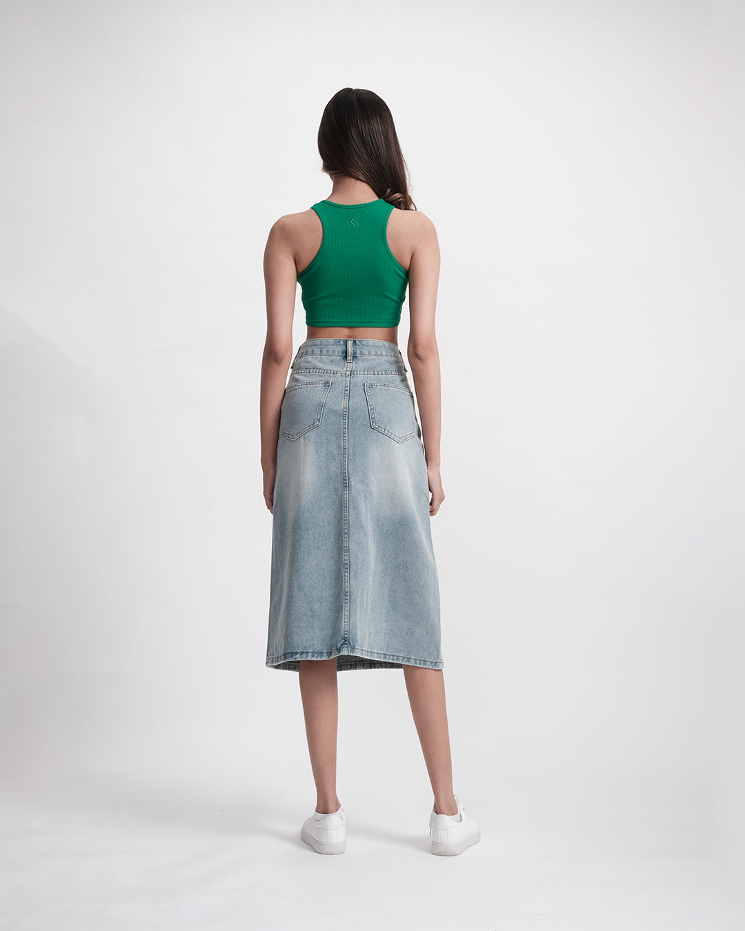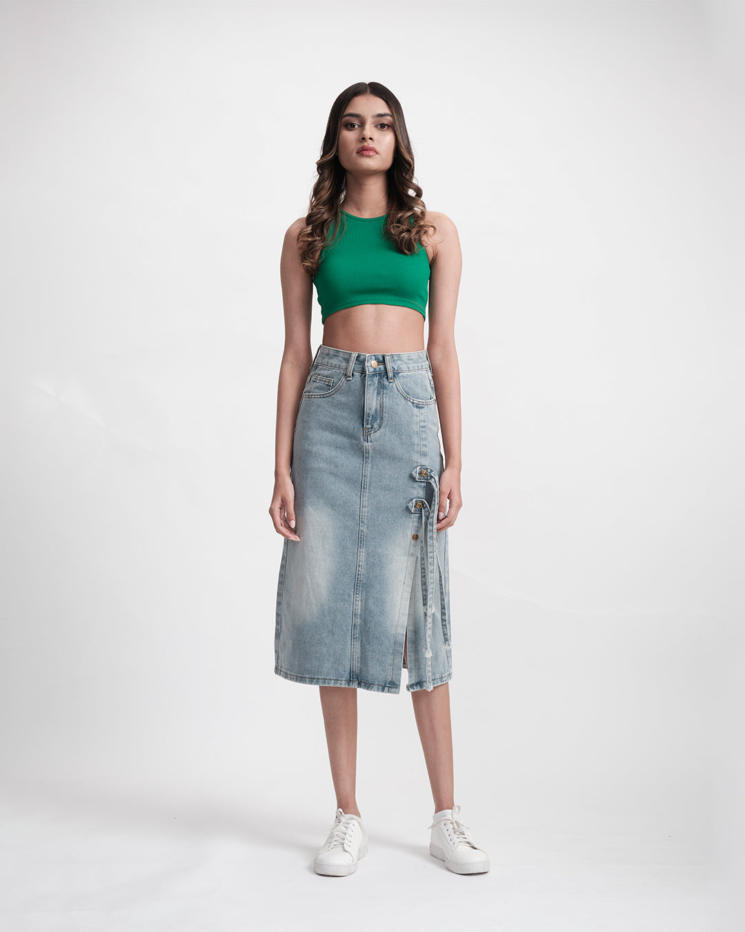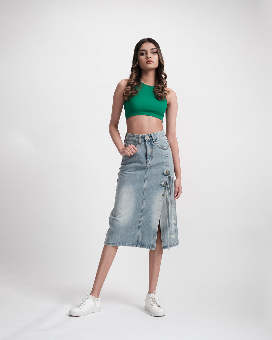 Sleek, versatile, and effortlessly chic, the Essential Rib Crop Top is a wardrobe staple designed for modern simplicity. With its clean lines and flattering ribbed texture, this top offers understated elegance that pairs perfectly with everything from high-waisted trousers to your favourite denim including the perfect denim skirt for a fresh, casual-cool look.
