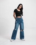 For those who believe denim should move with you—not against you. These flares balance nostalgia with modern ease, their exaggerated silhouette swinging freely while the premium stretch fabric keeps them anchored in comfort. A tribute to the ’70s, redesigned for the way we live now.