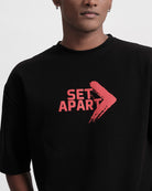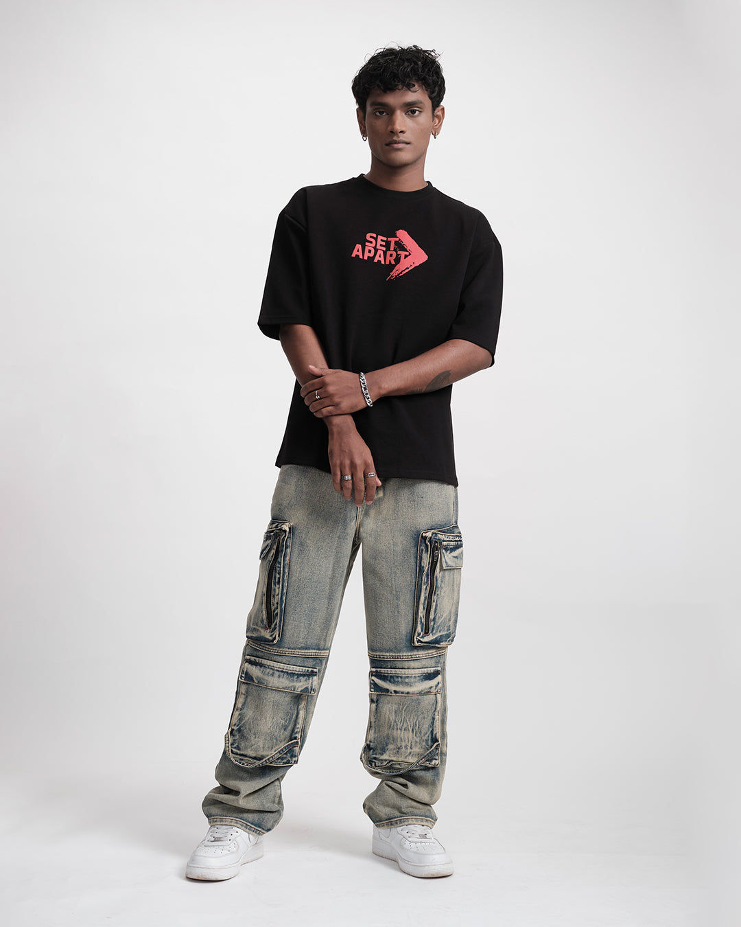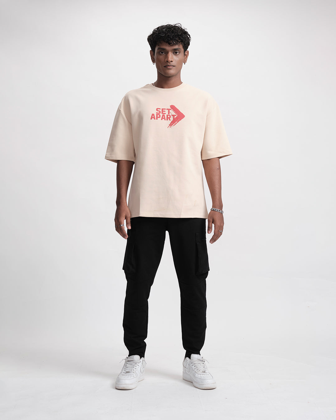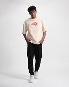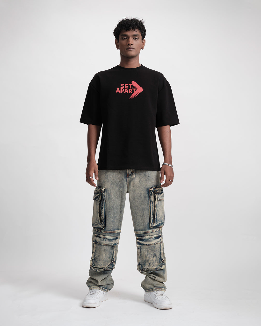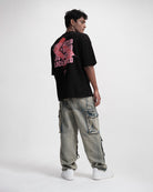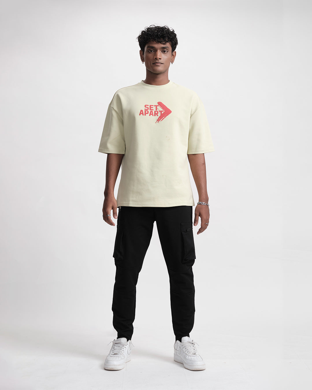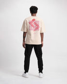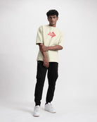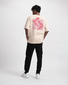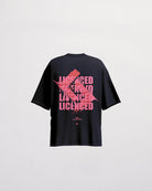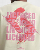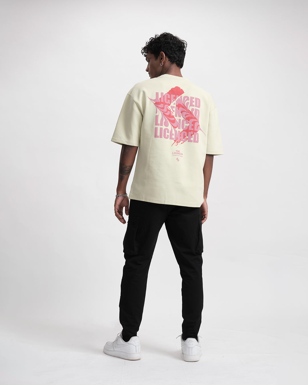 Bold strokes meet vibrant expression in this striking design! The back print combines modern typography with dynamic patterns, symbolizing the energy of breaking free and carving your unique path. The repeated 'Licenced' typography reflects persistence, while flowing abstract elements and bold orange accents signify creativity and forward momentum.