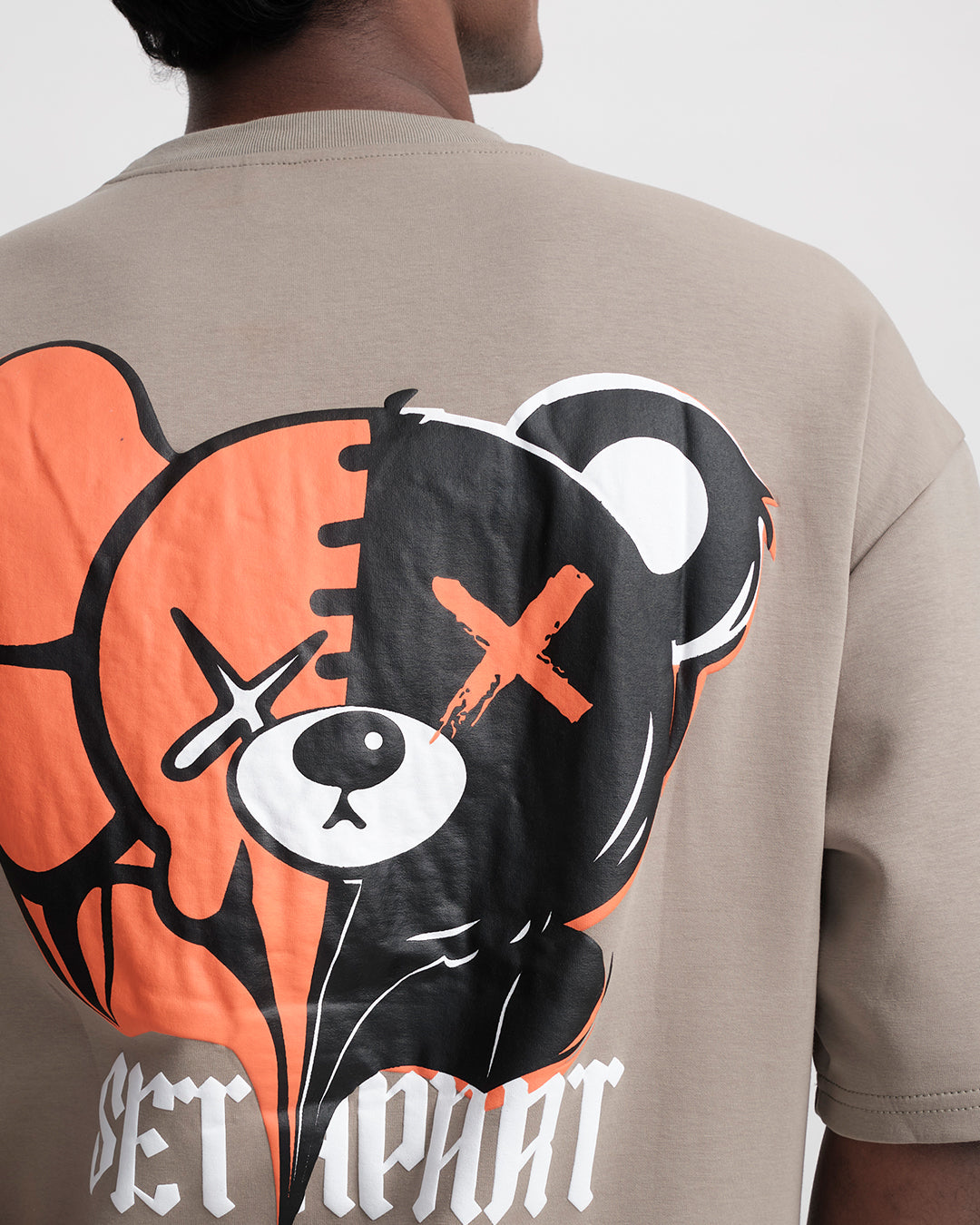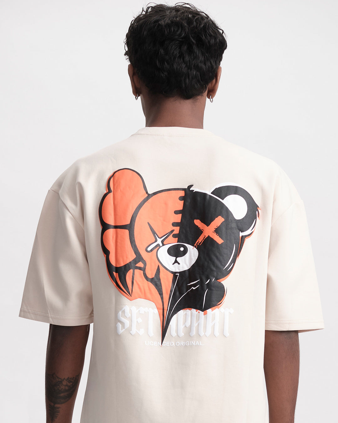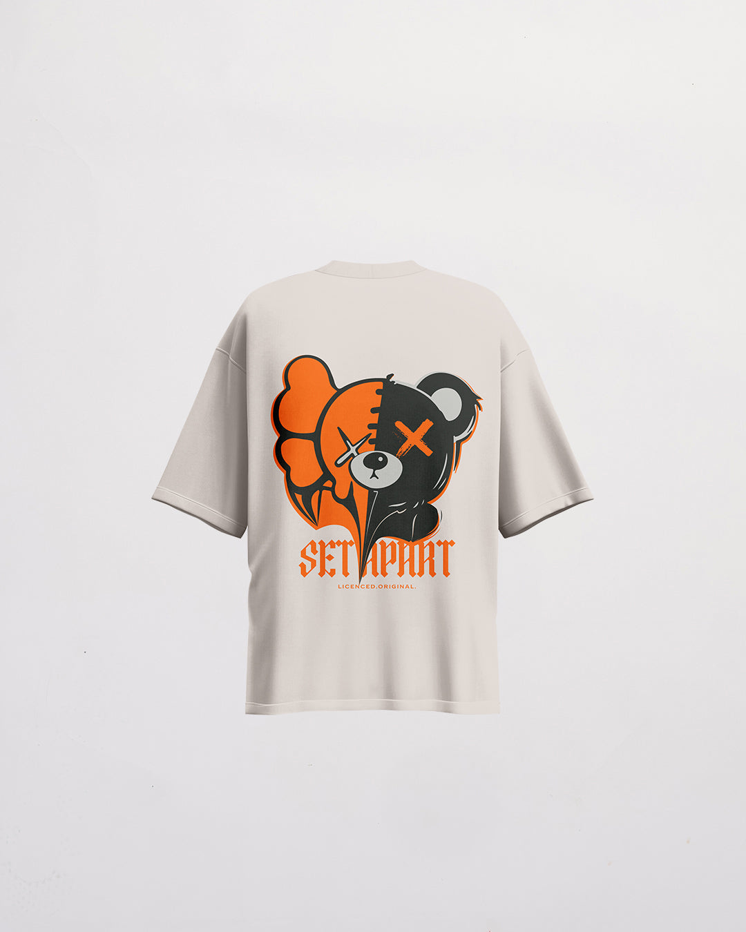 Unleashing the bold and rebellious spirit through art! The back print on this tee tells a story of duality and transformation. Inspired by the contrasting forces within all of us, the split design showcases the playful yet edgy vibe of the bear, symbolizing strength, resilience, and individuality.