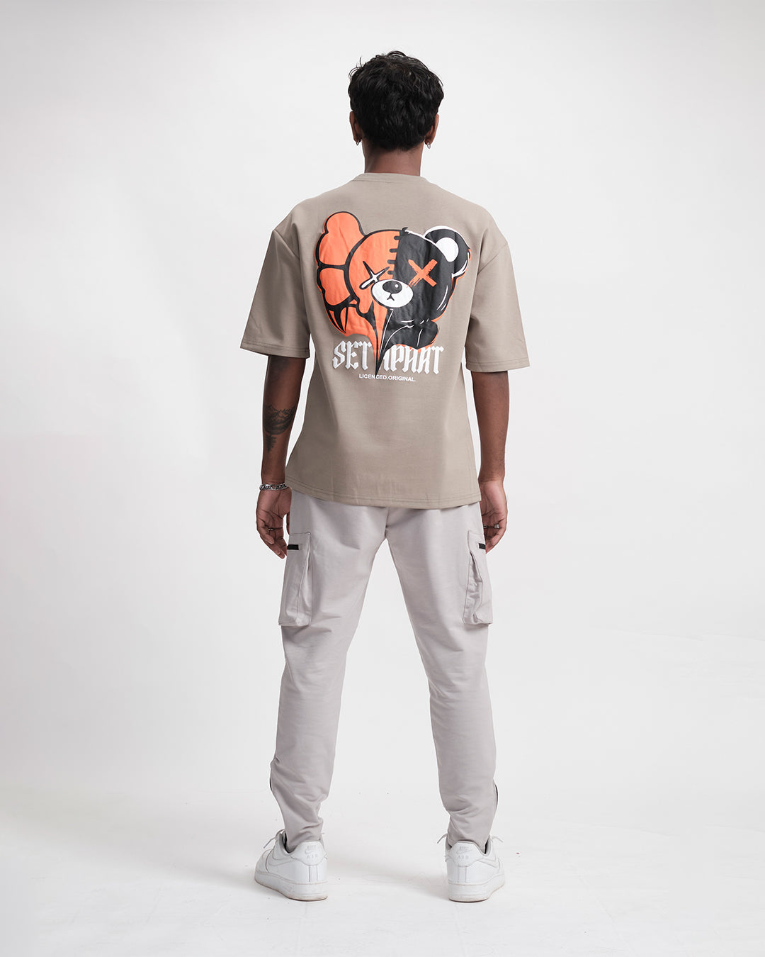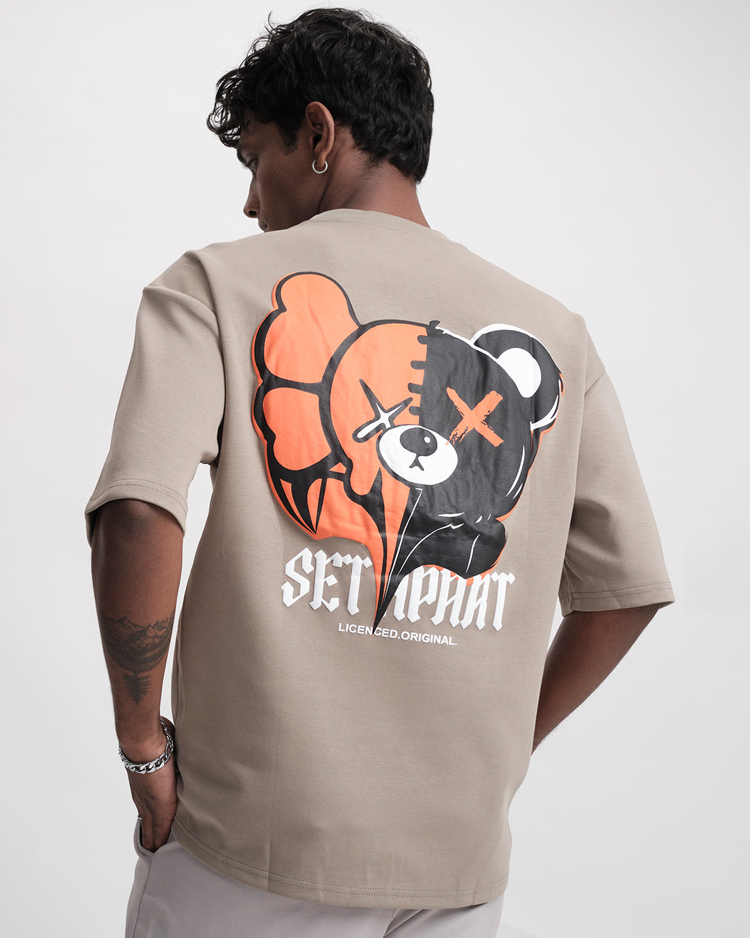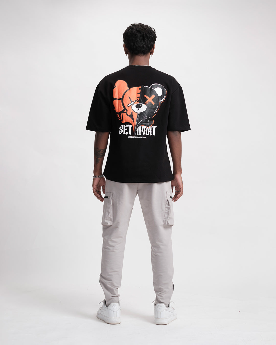 Unleashing the bold and rebellious spirit through art! The back print on this tee tells a story of duality and transformation. Inspired by the contrasting forces within all of us, the split design showcases the playful yet edgy vibe of the bear, symbolizing strength, resilience, and individuality.