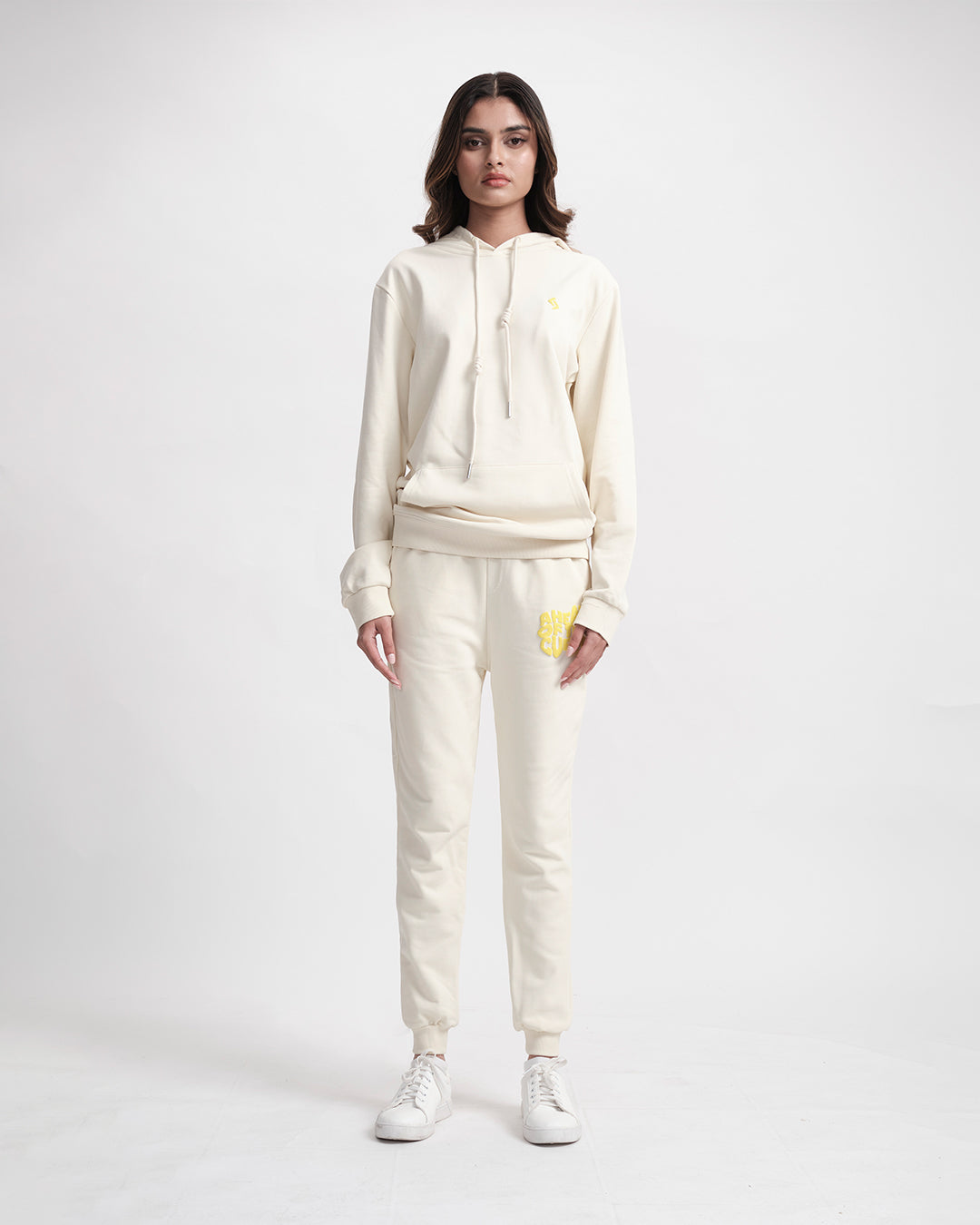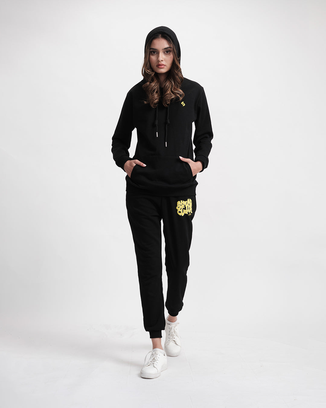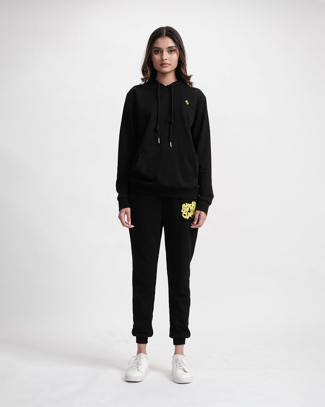 Streetwear meets soul-baring honesty in this coordinated comfort manifesto. The hoodie wears its heart on its sleeve, literally with distressed typography, while the relaxed joggers balance the look with utilitarian ease. Together, they create a uniform for unapologetic self-expression.