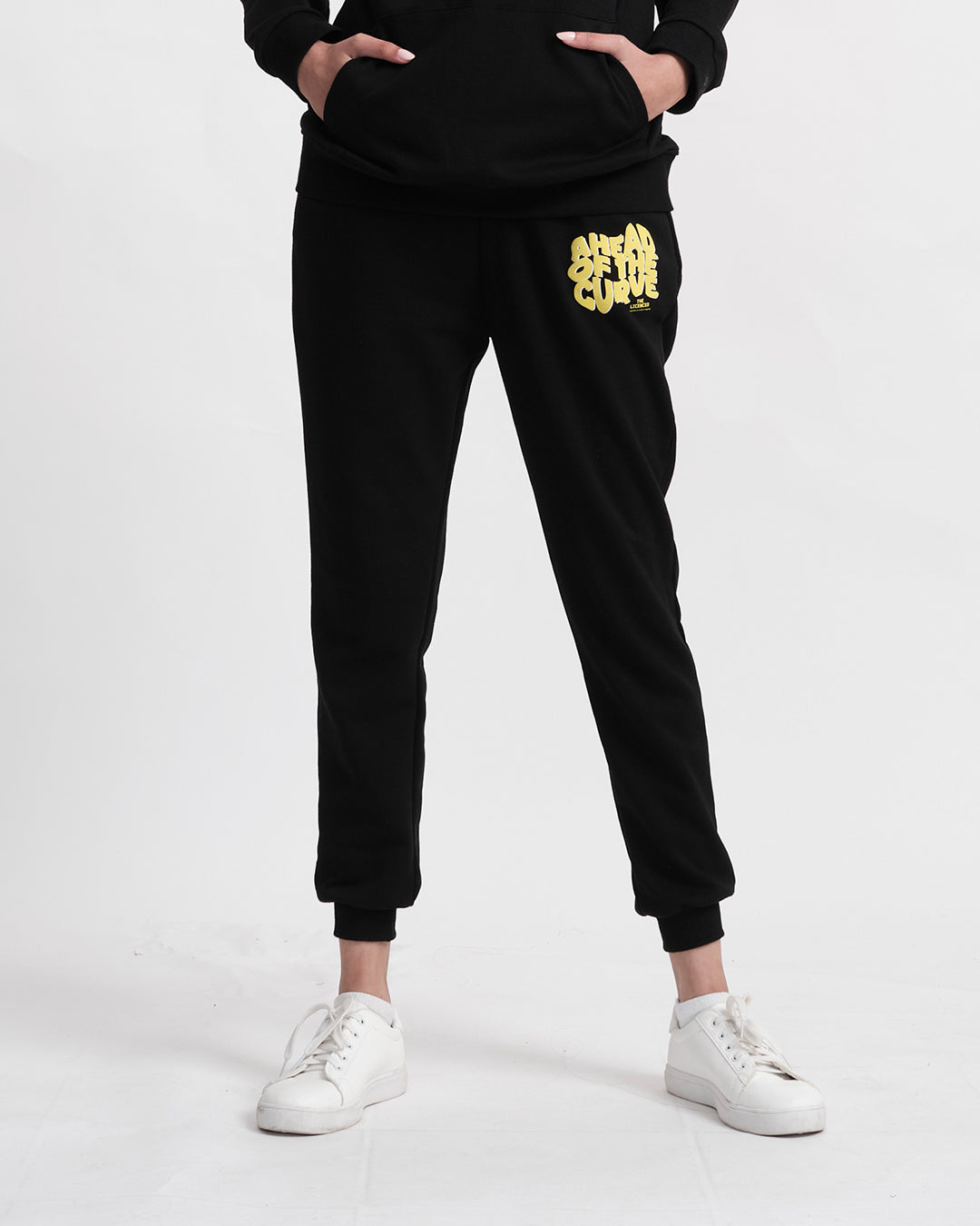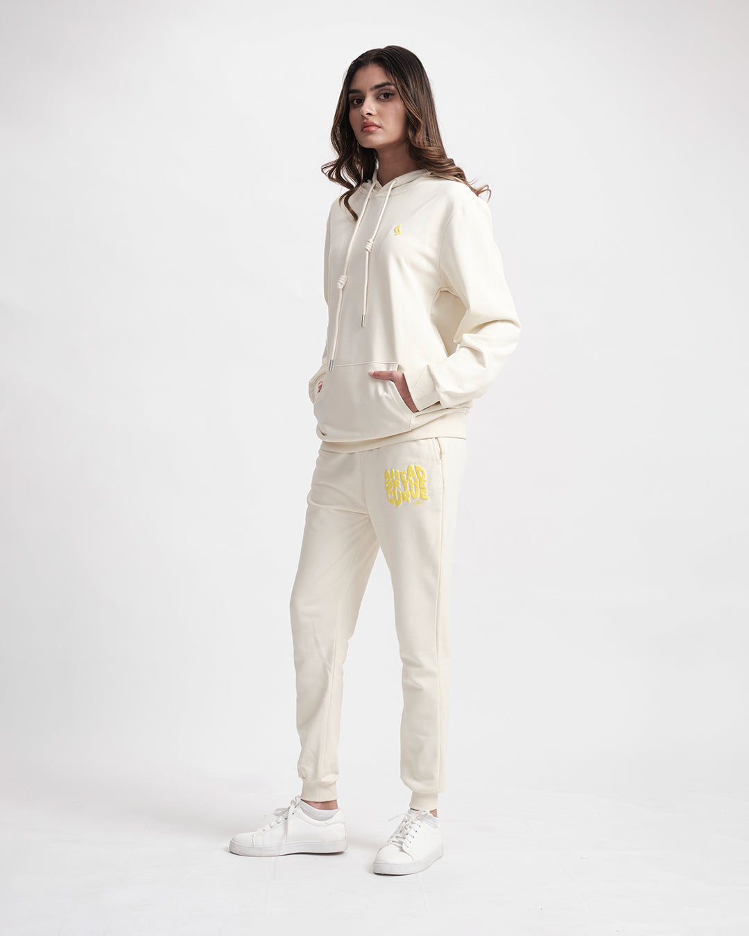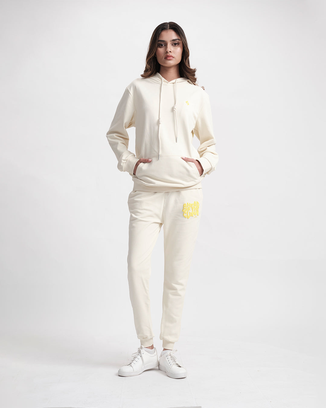 Streetwear meets soul-baring honesty in this coordinated comfort manifesto. The hoodie wears its heart on its sleeve, literally with distressed typography, while the relaxed joggers balance the look with utilitarian ease. Together, they create a uniform for unapologetic self-expression.