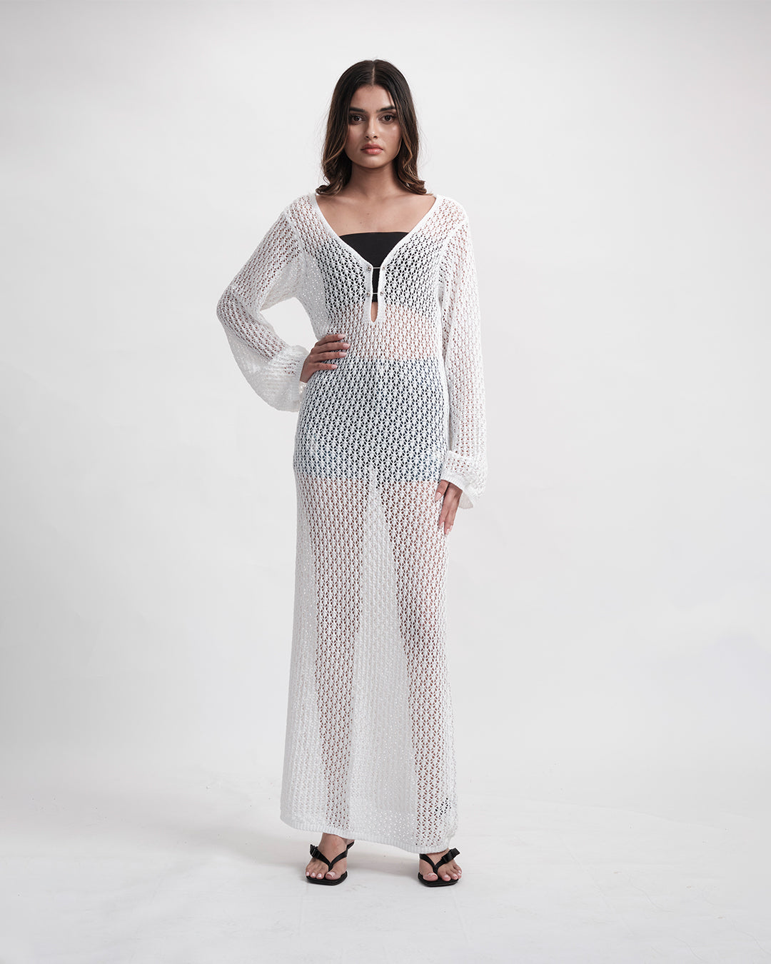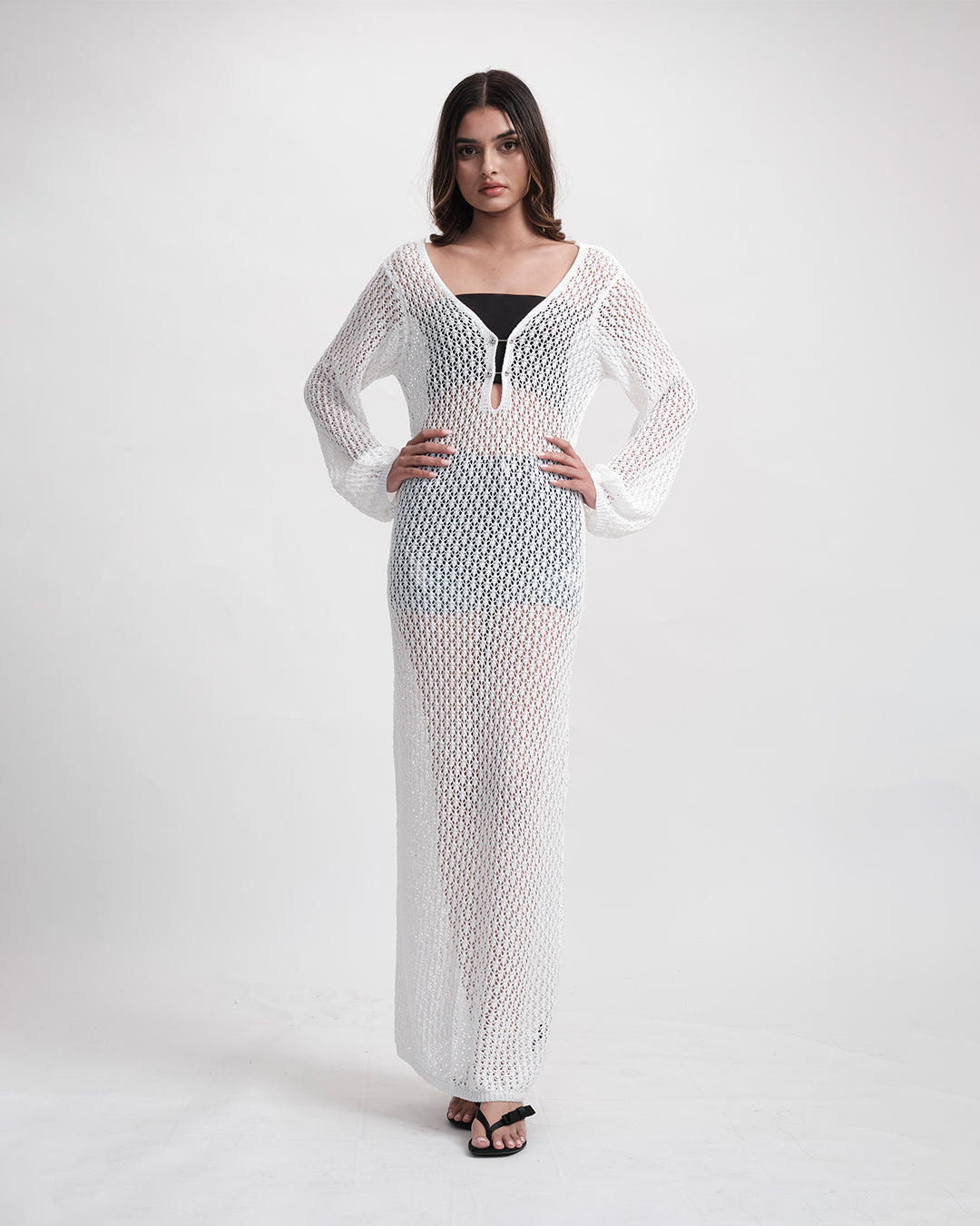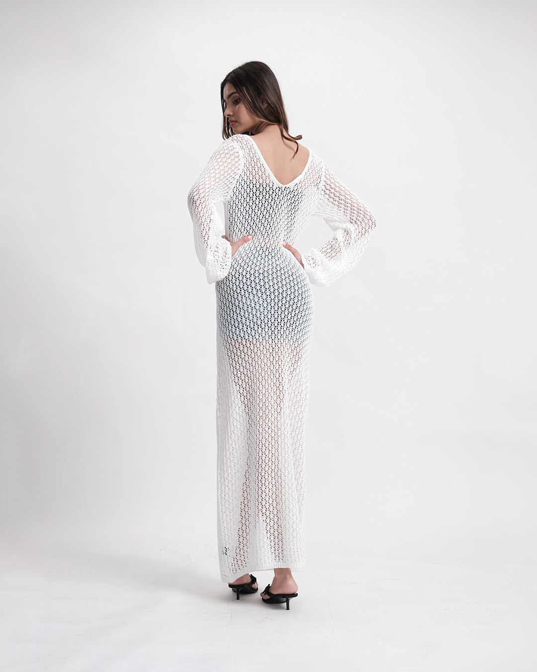 Free-spirited elegance meets contemporary edge in this one-size-fits-all mesh dress. The airy, translucent fabric drapes effortlessly on every body, while the sleek silhouette creates an instant put-together look. Designed for those who believe style shouldn’t come with size restrictions.