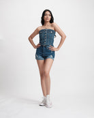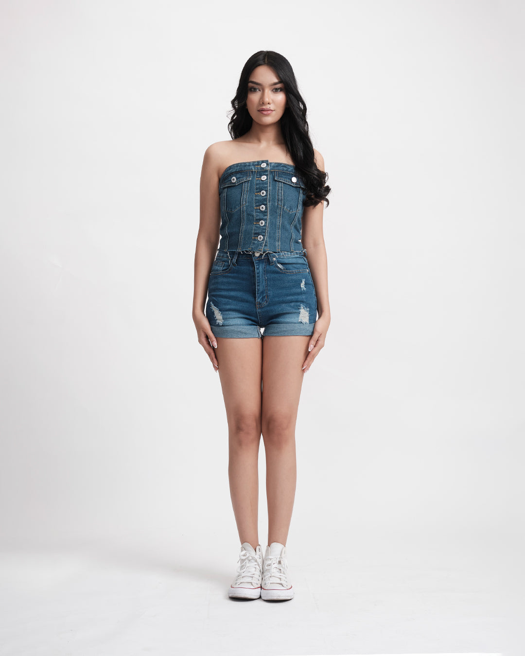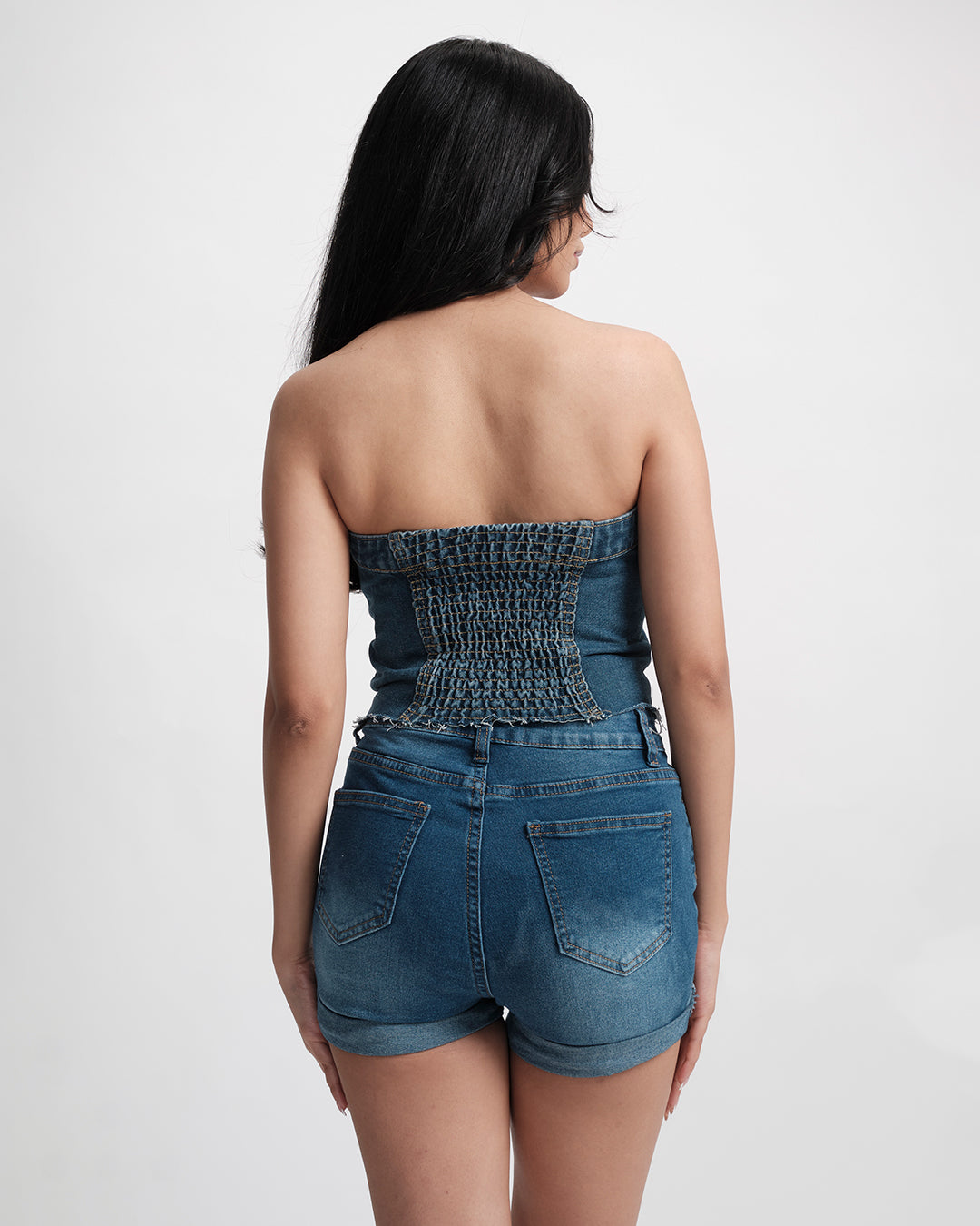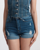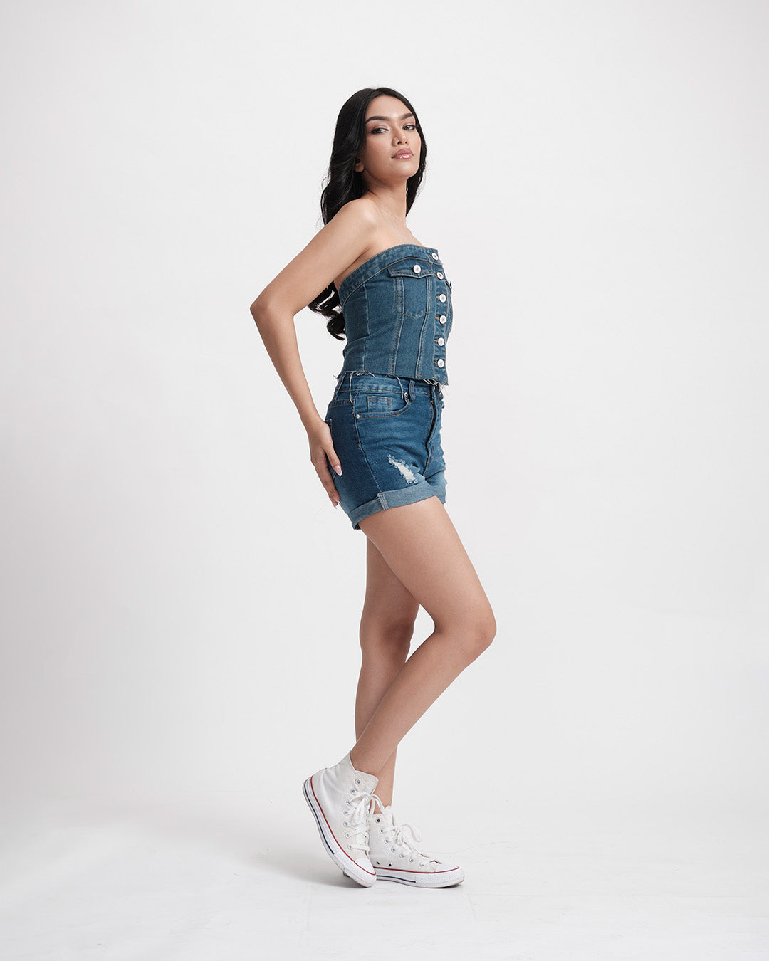 A second life for denim, reborn with character. These shorts celebrate the beauty of flaws-each raw edge and irregular stitch tells a story. The cotton-polyester blend gives just enough structure to hold their shape while keeping them light and easy for all-day wear.